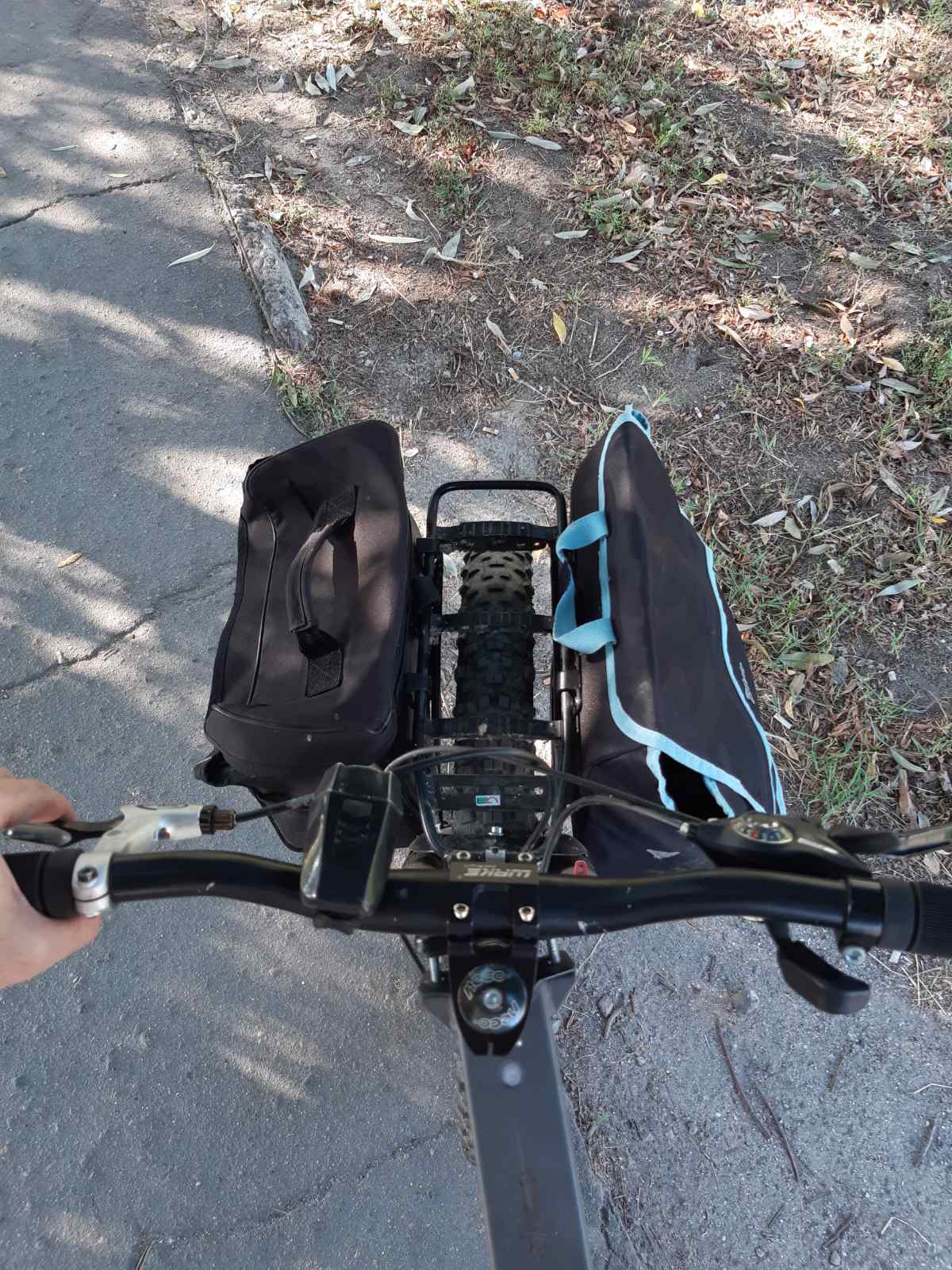 2. Переставил задний багажник на амо-вилку, стал как родной. Очень удобно возить сумки спереди.