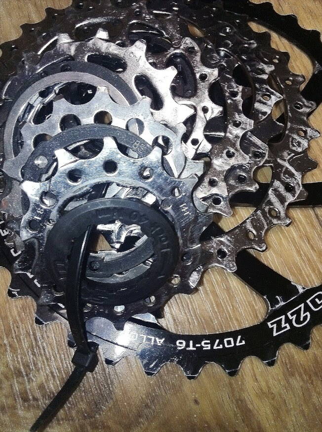 Комментарий к файлу: PG 850 дружини після ~2,8ккм. Була додана 15т зірка Shimano б.у., яка до того пройшла в мене на гірнику на маслі десь 1ккм. Видно які розклепи на ній і на інших зірках. Трансміся 1/8.