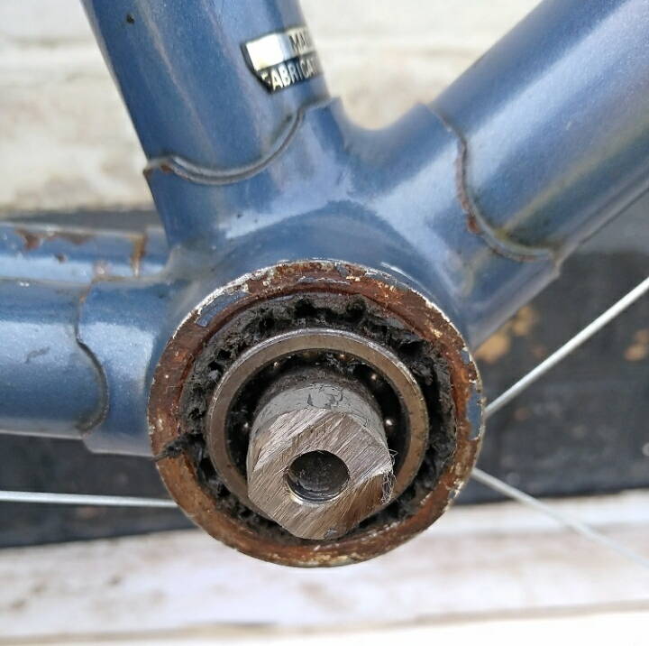 Мав таку проблему 2 рази .Вперше був італійський вел з пластиковим картриджем на 36мм різьба права-права ,одну сторону викрутив а другу висверлював тому що крутив нетуди.Такий варіант як у автора викручував з алюм. рами попкою польського виробництва і все пройшло нормально .Остання спроба ,намагався викрутити з хромо молібденової рами невийшло .Робив саморобний ключ з труби вварював в середину направляючі ,коротше кажучи ключ був схожий на фірмовий але без внутрішньої пластини і прижимного болта ,про прижимний болт потім дотумкав .але якби бачив орігінальний ключ то зробив би копію на 80% . та основна проблема даних картриджів в тому що верх. фланець недає можливості -доступу ВД-40 чи гасу до різьби яка заржавіла і ніяк невідкручується.