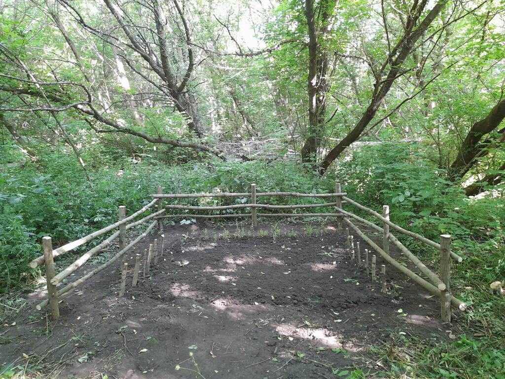 15-16.07.2023 — в нескольких местах покосил траву, наполнил дровник, доработал велопарковку (добавлены вешалки для рюкзаков), возле лавочки сделал ступеньку..., из неприятного — рушится домик "савы".