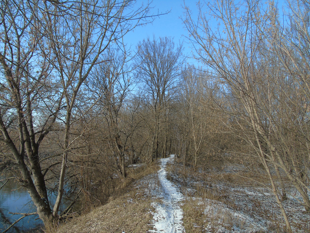 В субботу 22.03.2025 возобновил работы над велотропой, благо погода наконец-то определилась. Самые большие проблемы — участок с обрушившимся берегом, где надо сделать небольшой объезд и реконструкция 3-й базы, где упало большое дерево... К сожалению, не смог развернуться с поломанной кареткой, работал только на 1-й базе.