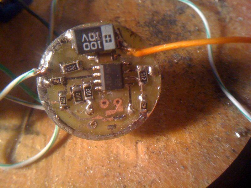 драйвер светодиода займет свое место сразу за платой микроконтроллера, и будет круглый как плата микроконтроллера...