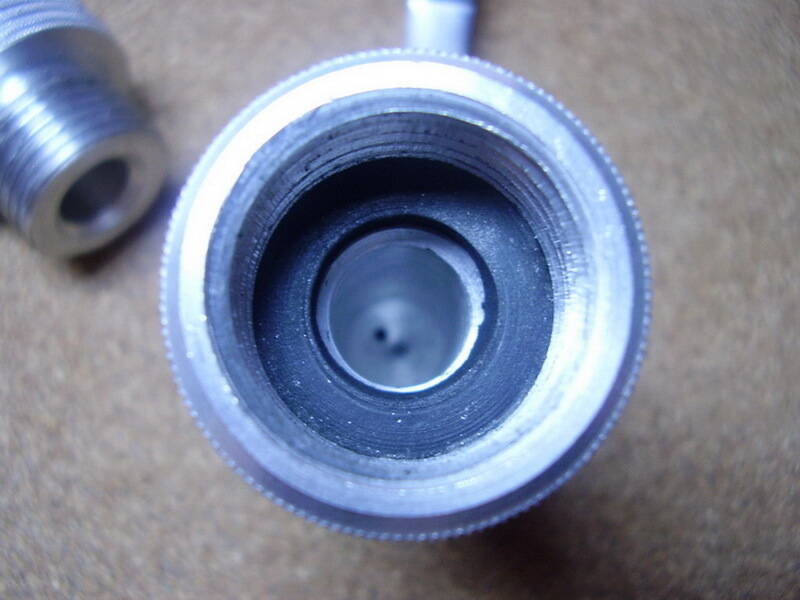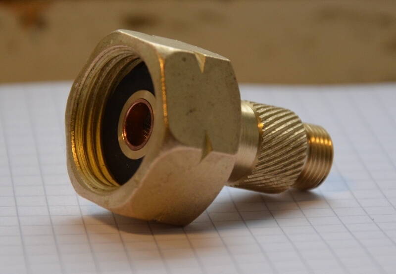 Да, еще есть один недостаток, который можно устранить - внутренний объем переходника - в нем высверлено большое отверстие почти на всю длинну переходника, а это значит, что после перекрытия вентиля и отсоединения баллона весь этот жидкий газ польется на руки - в глаза через маленькое отверстие перелива возле иглы объем газа - где-то 8-10 кубиков - это немало. Можно найти подходящего размера стержень из любого материала, сделать там либо сквозное отверстие поцентрупримерно 3мм или пропил сбоку, чтобы заполнить этот объем и вставить этот "заполнитель" в полость. после этого заправлять будет приятнее...