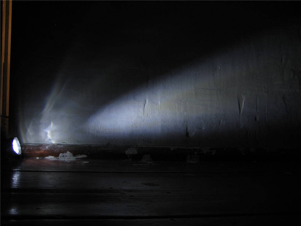 в отражателе вырезан центральный диод и поставлен Edison ARC Series 3Watt (старенький но недорогой) и 15градусная линза, на поворотной площадке (по вертикали на примерно на 10 град):