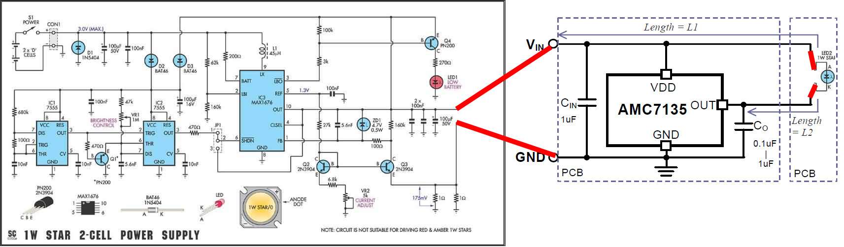AMC7135 удобен в качестве простейшего решения при напряжении питания 5,5-3,7В и допускает параллельное включение для увеличения выходного тока.