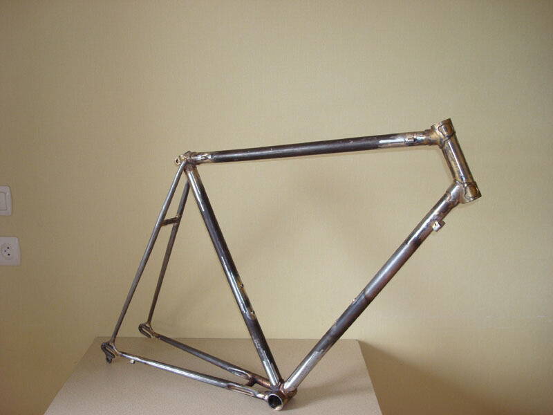 Наверное все на форуме видели моего крокодила на базе Чемпиона, к слову не 60-го года выпуска а 62-ого, как оказалось после снятия старой краски. Этот факт немного умаляет антикварную ценность данного экспоната, но радует с точки зрения усталости конструкции, как ни как, а рама на два года все таки моложе :smile:. Последней манипуляцией над своим велосипедом которая была запланирована давно была покраска рамы. Зимой я успешно снял старую, вернее 5 слоев старых красок, и в начале весны напаял на раму упоры для рубашек (отдельная история). До напайки упоров и начала "сезона дождей" успел недельки три покататься на голой раме, видок у велика был еще тот и я по этому поводу гордо называл себя всадником апокалипсиса :D.