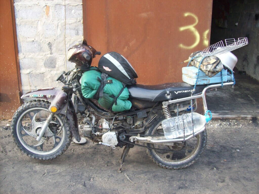 Сильно не смейтесь. :wink: Маршрут №1 пришлось завернуть, не пройдя и половины, по техническим причинам. У Виталика была сломана ручка сцепления на лугу на ровном месте. Проводить его по асфальту на бивуак пришлось всем. :wink: