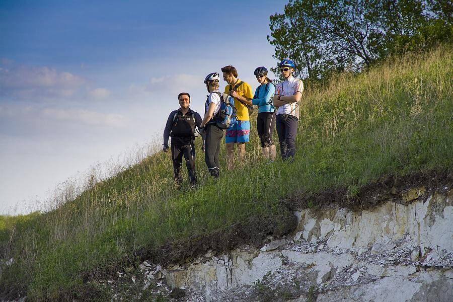 Слава богу - обошлось без проколов. В конце спуска - величественная панорама, открывающаяся с вершины 40-метровой вертикальной меловой стены: