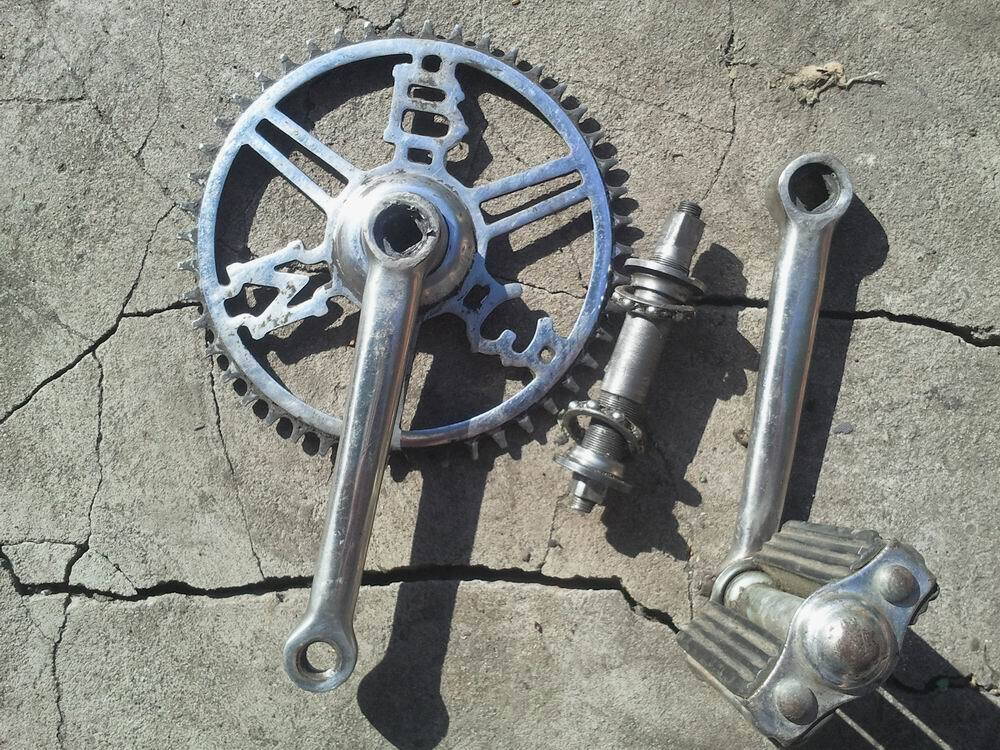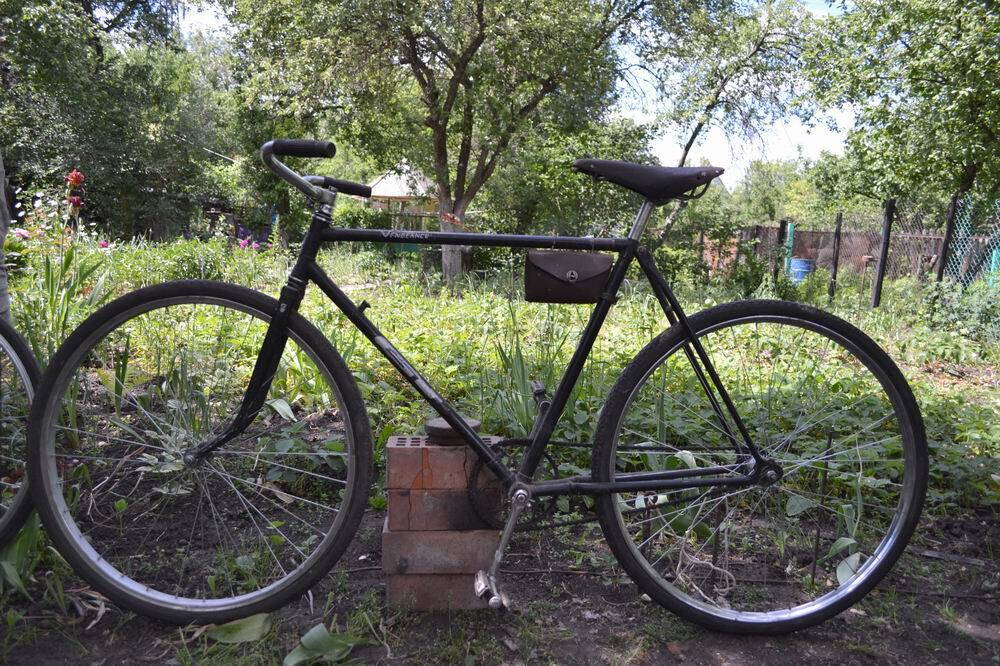 Жемчужина мой коллекции, "Прогресс" В-110 1953 года, достался от соседа. Особенность велика в системе под квадрат, передача 46 на 18. Вел был в плохом состоянии, так как простоял в сарае больше 5 лет, везде была ржавчина, поэтому в течении 4 дней перебрал втулку, рулевую, поставил каретку,покрасил раму, вилку и крылья, переспицывал колеса, поставил цепь, осталось восстановить седло.