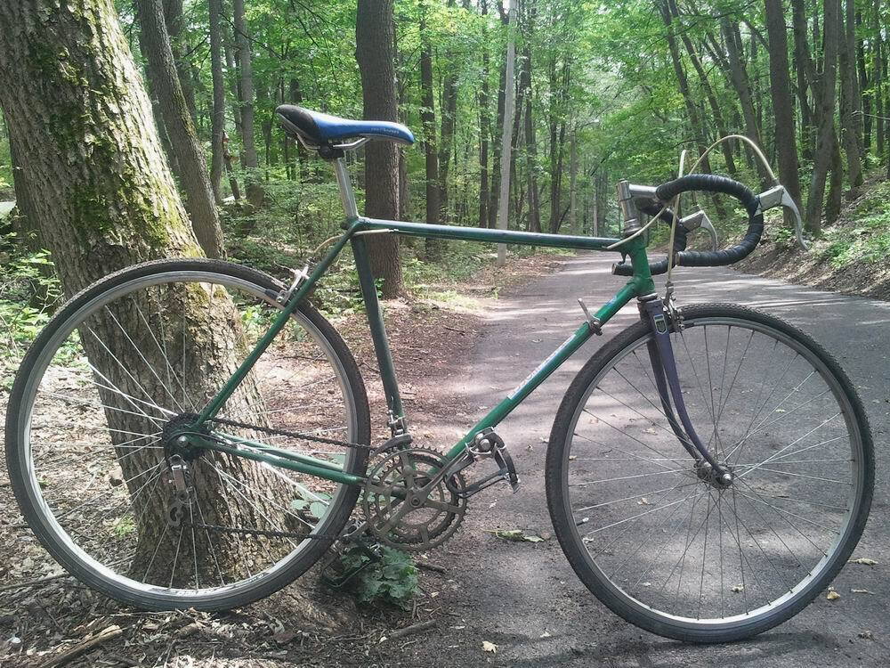 Старт шоссе 155-411 1988 года, купил его в отличном состоянии для отца. Поставил обода weinmann dpx, китайские спицы, покрышки, камеры, цепь shimano hg 40, тупликсы без ремешков, оплетку на руль, поменял колодки на альхонгавские, перебрал втулки, каретку, рулевую, педали, вместо пятерика 13-17 поставил 14-22. Для города отличный велосипед :smile:.