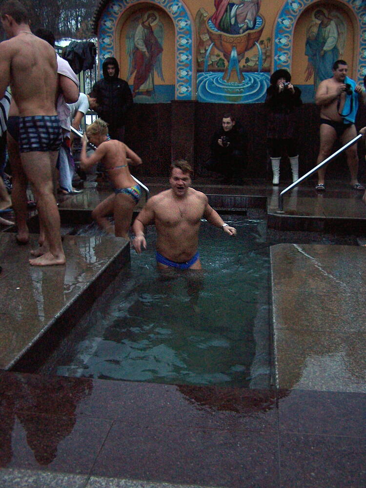 Ну первый начал, первый и продолжу) Народу в 7 утра было много, не критично, но много. В купели стояла уже очередь из 10-15 полуголых тел. Погода конечно могла бы быть и похолоднее, так контраста особого не случилось :roll: