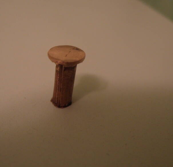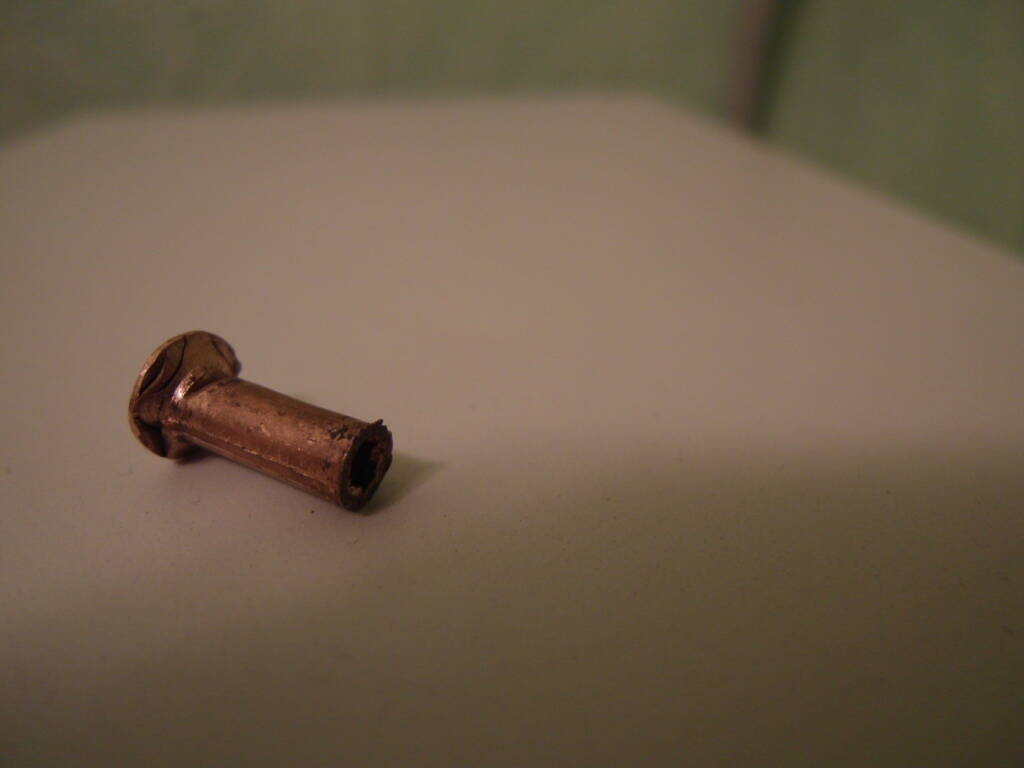 Не сложный способ изготовления медных клепок для седла. Нужна трубка от холодильного оборудования 6 мм. И прибор для развальцовки этих самых трубок. Во всю высоту прибора зажимается трубка и сверху оставляется чуть большая ее длина. Далее молотком сравниваешь трубку в плоскость. Остается дороботать наждаком и отшлифовать головку.