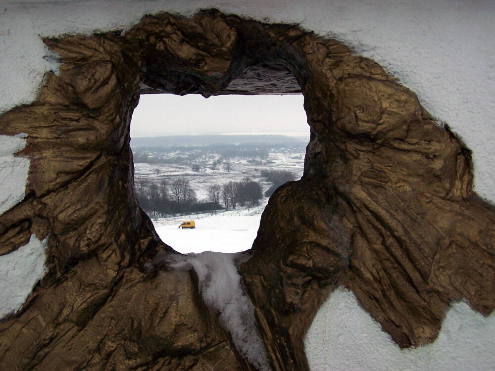 По этому лугу мы и выехали к подножию Высоты Конева. Взять ее было принципиальным вопросом для уважающих себя веломанов, поэтому, преодолевая трудности заснеженной и скользкой дороги, уходящей вгору более чем на 2 км, мы таки забрались на нее.