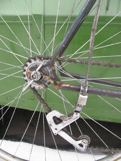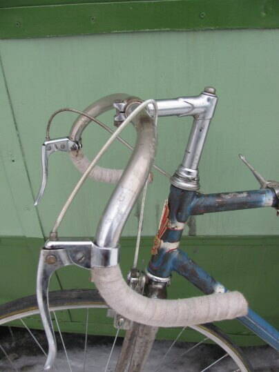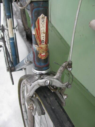 И я покажу, ХВЗ Спорт 74 года. Комплектация практически родная, только зп задний переклюк не поручусь, папа его в свое время доделывал-переделывал. Вилка гнута, востановить вряд ли получится. На положение седла и руля не смотрите - начал разбирать и вспомнил, что фоток нет - наспех собрал что0бы запечетлить. Под изолентой просматривается оригинальная оплетка руля-белая ПВХ лента.