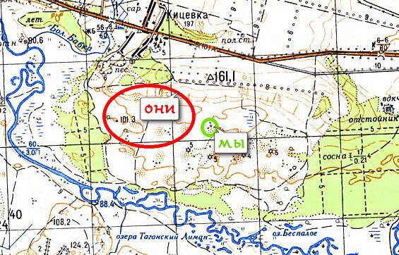 Обозначенная на карте территория будет задействована на круглые сутки под стрельбы и минные поля. Местное население оповещено. Операция "Афганистан" согласована с военными и с местными органами власти. Теперь и с нами. Мы теперь соучастники. Профи по нам стрелять не должны. Но в зону не входить с 5:00 субботы до 12:00 воскресенья.