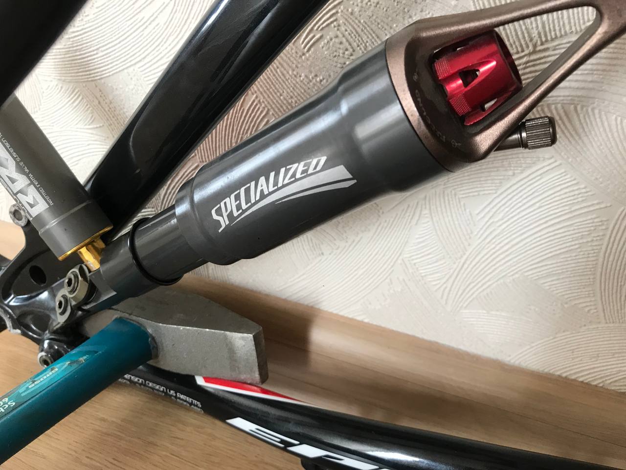 амортизатор Specialized Brain, після ТО, налаштування всі працюють, на аморті є дрібні коцки від піску, зашліфовані
