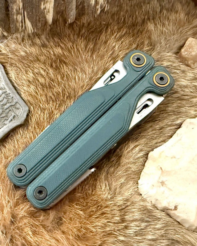 Усе в новому мультитулі спрямоване на комфорт. Руків’я виконане з композитного матеріалу G10 — легкого, міцного й приємного на дотик. Поверхня має рельєф у вигляді топографічних ліній, що не лише виглядає ефектно, а й забезпечує впевнений хват навіть у мокрій руці. Це дрібниця, але саме вона визначає, наскільки безпечно користуватися мультитулом у польових умовах.