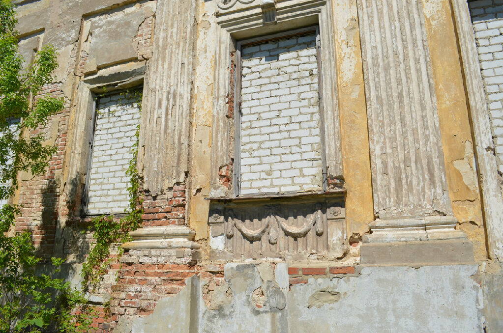 Пройдя мимо церкви через калитку упираемся в торец главного здания имения: