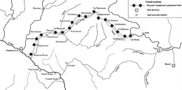 В общем имеется карта Шуберта конца XIX века, на которой отмечены места расположения Козловской(справа) и Фёдоровской(слева) крепостей.
