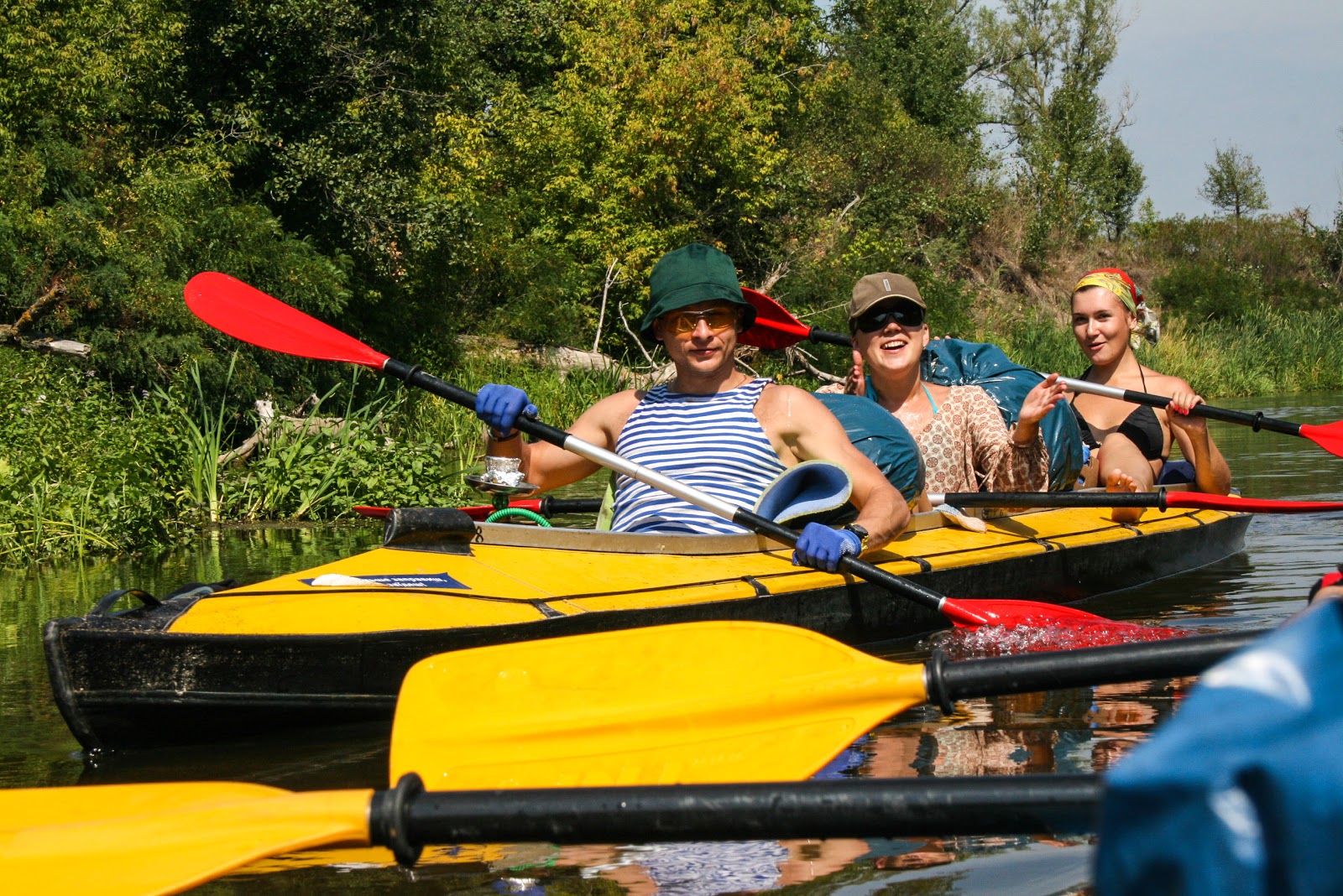 Через пару минут закрадываются мысли что что-то не так. Я постоянно цепляю весло второго человека и это не дает возможности мне управлять байдаркой. Проведя серьезный сравнительный анализ байдарок-конкурентов, я пришел к гениальному выводу;-))