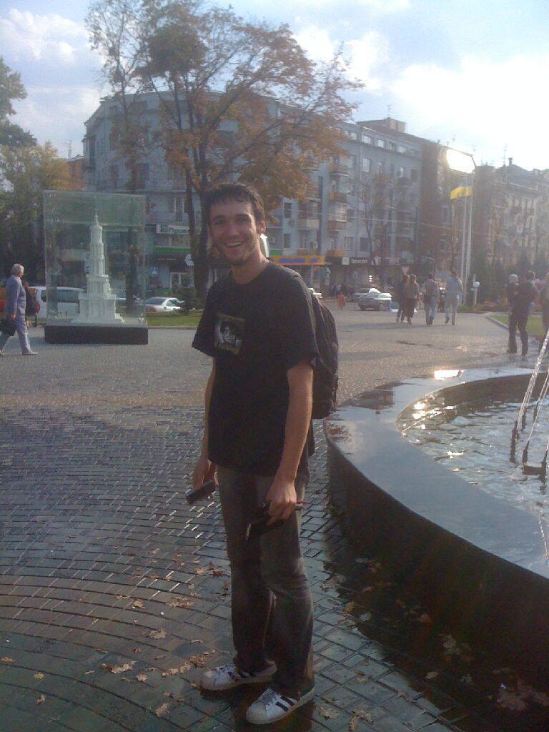 Принимаю решение катить через Бажанова – пусть и крутой подъём, но достаточно короткий. Всё-таки не пилить столько, сколько на Веснина и не объезжать так далеко, как через Короленко. Перед подъёмом даже не пытаюсь раскручиваться и почти сразу встаю с седла. Скорость не просто маленькая, а такая что возможно стоило бы пойти пешком. Но гордость не позволяет и я карданю дальше. Технично вливаюсь в стоящий поток машин на Пушкинской и через встречку залезаю на бордюр. Опять фоткаю Жору на фонтане.