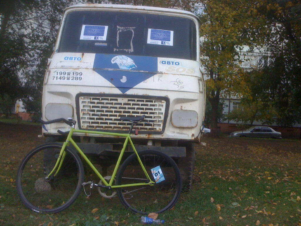 Лезть на полотно откровенно лень, фоткаю вел подняв его одной рукой – лишь бы эмблему Динамо было видно.