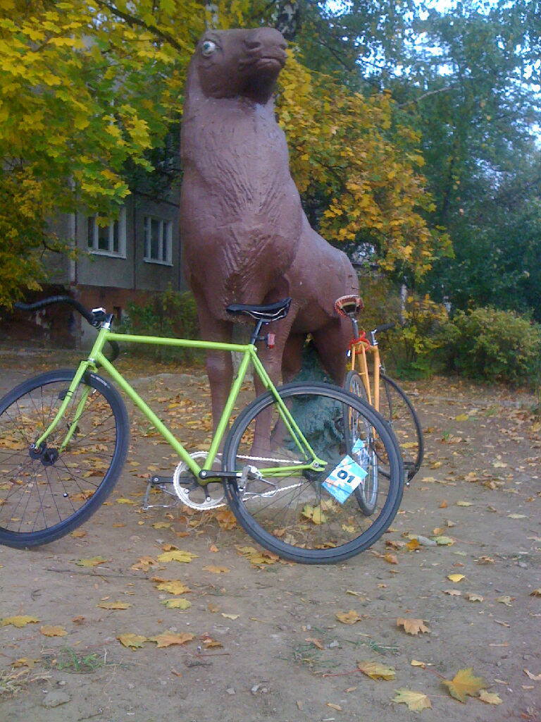Обратно на Новгородскую и на проспект. Встречные фиксеры начинают попадаться не доезжая метро 23 Августа, что не может не радовать. Приветствую их классическим: «Держи каденс, блеать!» Пока качу по проспекту лихорадочно высматриваю номера домов, т.к. о существовании оленя даже не догадывался до того дня. Возле него меня встречает один из гонцов со словами: «Я тут его уже минут двадцать ищу!» О_о Делаю фото и срываюсь дальше.