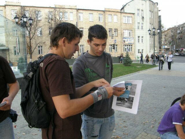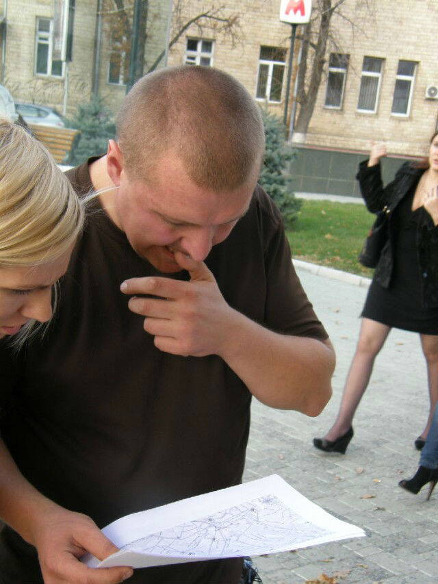 Наконец-то прибыл наш организатор и вручил всем спок-карты, фото точек и карту. Тут я честно был сильно самоуверен и думал, что запомнил весь маршрут, который мне показал Жора. Вполне разумным было бы внимательно еще раз подумать над тем, как буду ехать. В любом случае я запомнил улицу, по которой надо отъезжать от старта. Все тем временем изучали точки, делали наброски маршрута. Рамиль как-то вообще решил стартовать пораньше под шумок, но мы его быстро поймали) А Руслан из Кривого Рога решил не ехать, так что получалось, что "иностранец" буду только я.