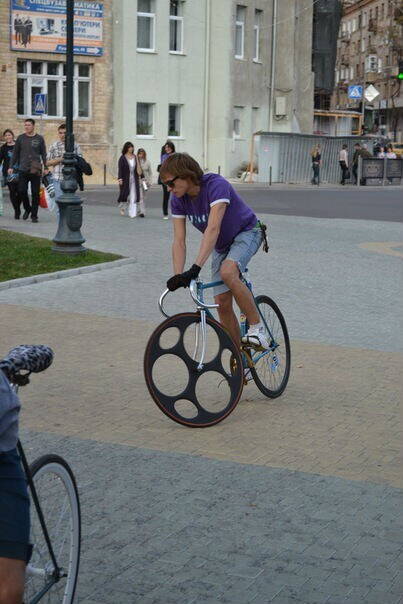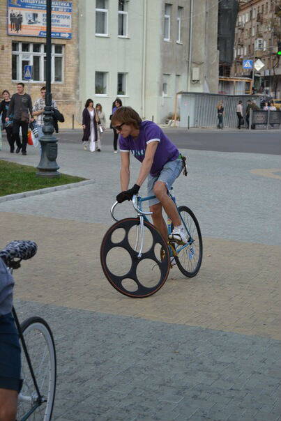 Вообще Харьков конечно более приспособлен для фиксеров, подъемов не так уж много, дороги в большинстве случаев отличные. Ну и как я понял расстояния между районами города большие, от этого есть где разогнаться. Мне с моими 51/16 было просто прекрасно, а я еще подумывал перед гонкой сменить на 46/15, но стало как-то лень гайки крутить.