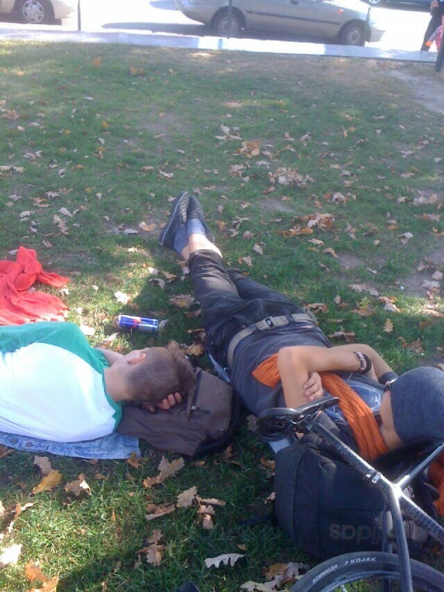 Прикатил в Харьков в 6 утра. Всю ночь думал, что вел свалится с грузовой полки в купе, но обошлось. Выхожу из вагона и тут сразу подлетают пацаны. Оказалось это типы с Кривого Рога, с 12 ночи гуляют по Харькову и решили вот проверить, может кто приехал с Киева. Я даже как-то проснулся от такого) Неспешно собрал велик и поехали до ближайшего МакДак, чтоб выпить кофе, где нас и встретил проспавший все на свете Жора.