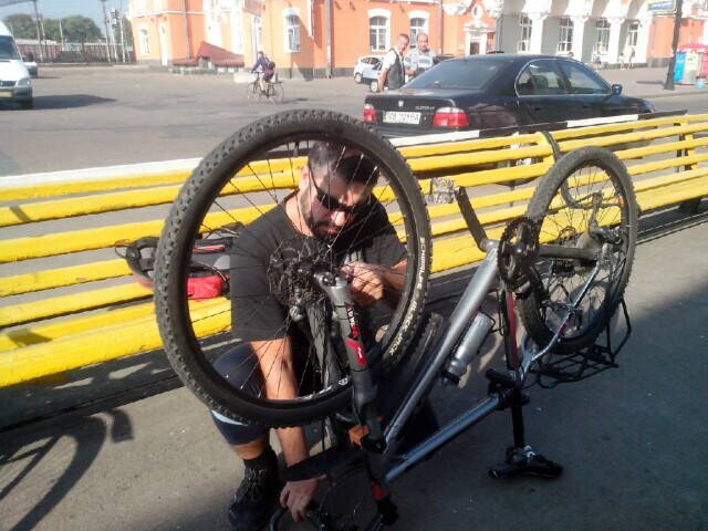 В Чернигове прибыли в 10:30. Проводим сборку и поверхностное ТО железных коней после транспортировки.