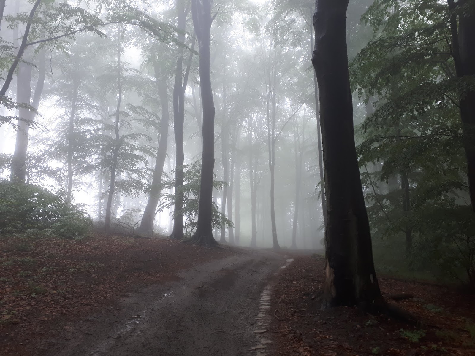В кінці села маршрут повертає ліворуч і після невеликої полонинки входимо в старий ліс з крутим підйомом. Оскільки ми йшли з 2-3 метровою видимістю і під проливним дощем, то помилуватись всім цим не змогли(