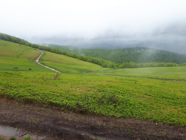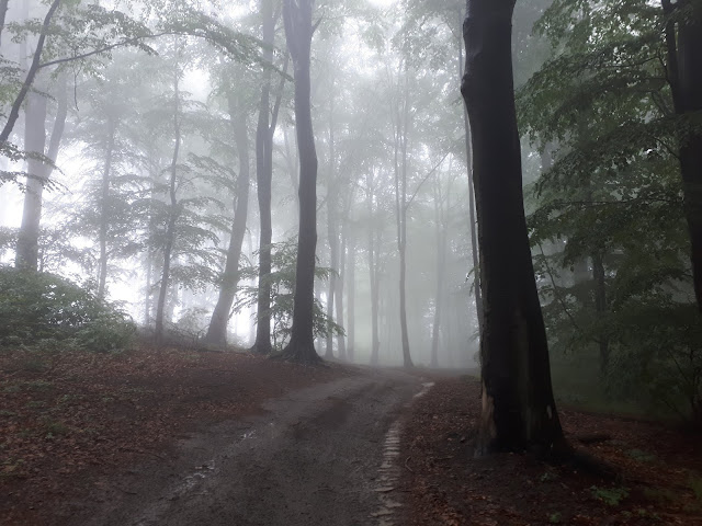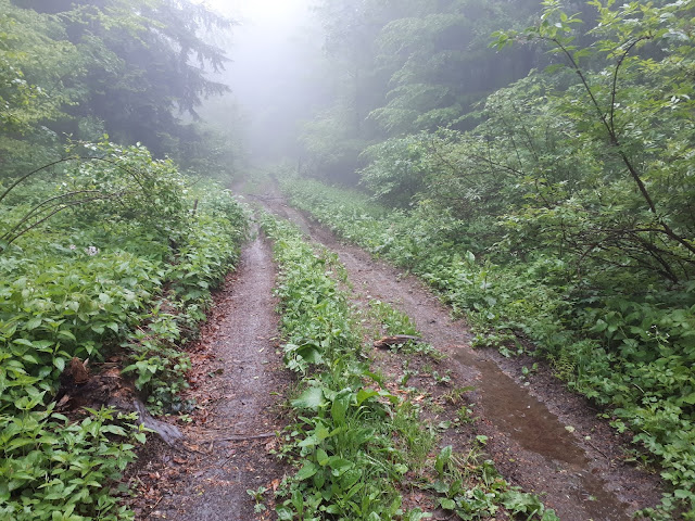 Євген: По хребту йде мальовнича стежка паралельно дороги. Але видами з цієї стежки, на жаль, ми не отримали насолоди. Огляд на кілька десятків метрів, за якими туман як "молоко" :)