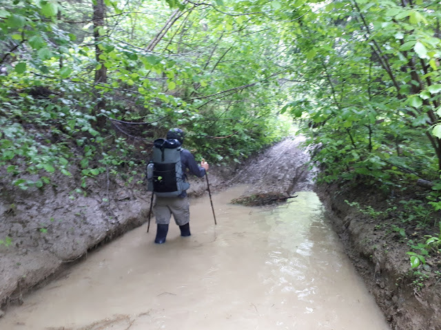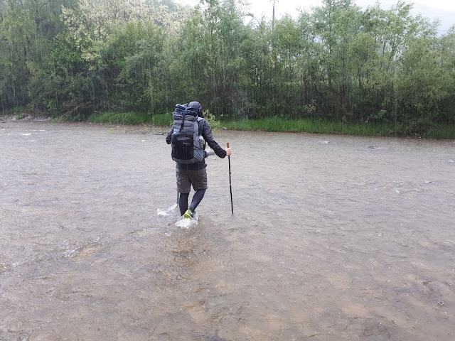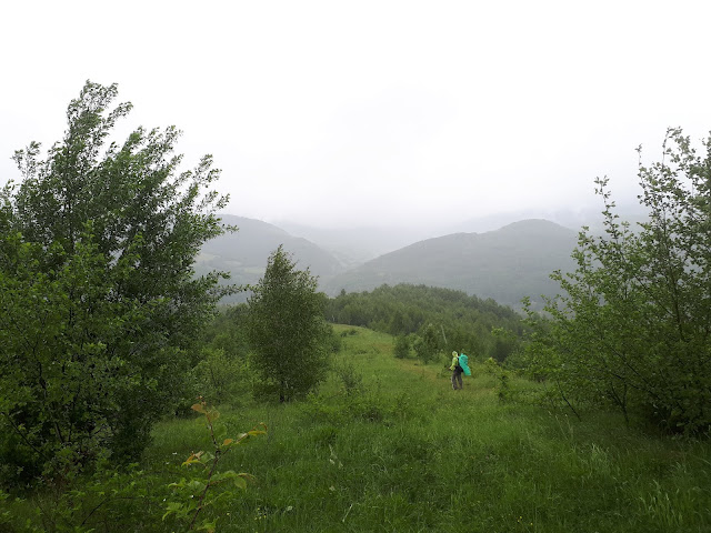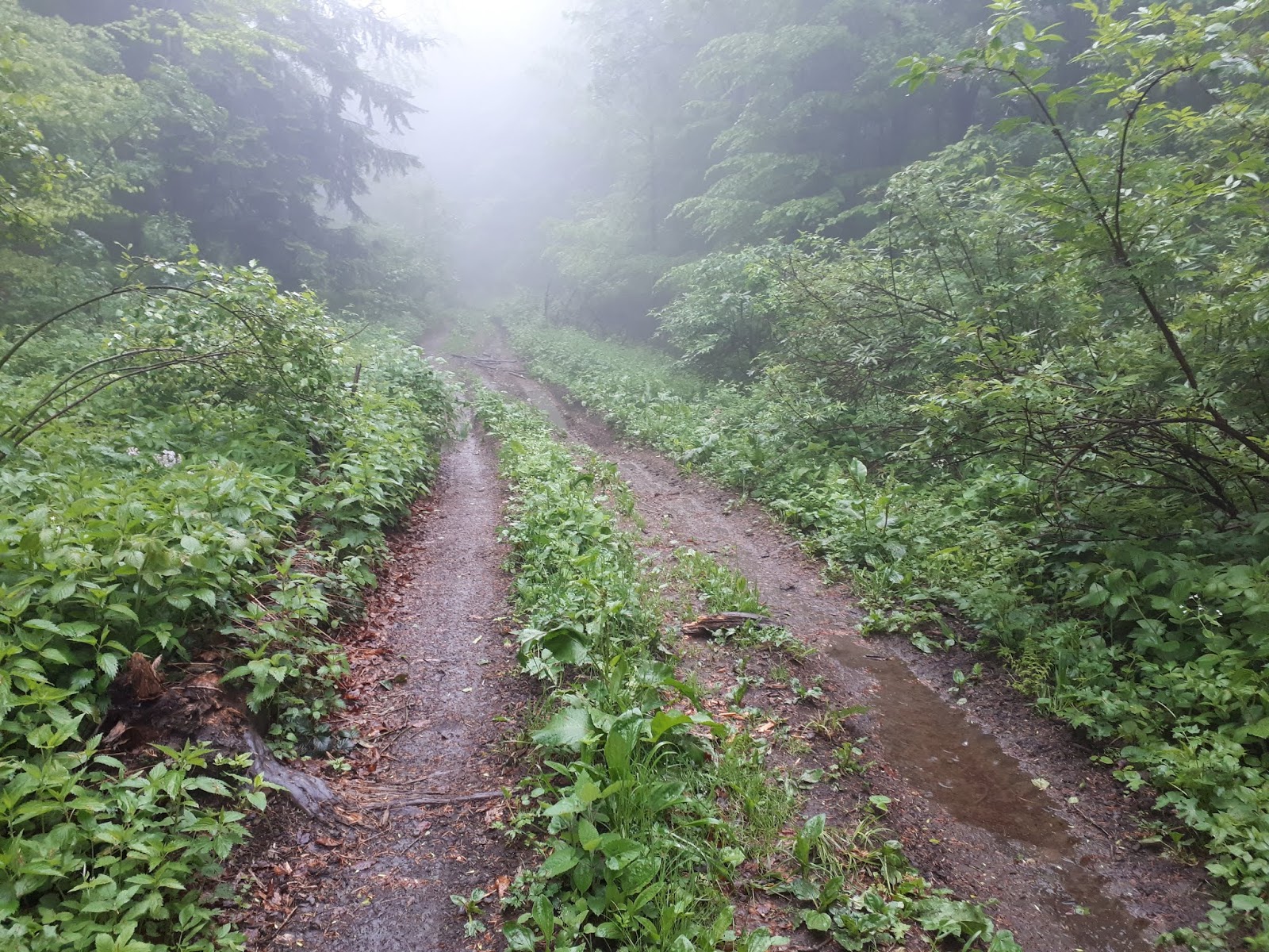 За містком коров'ячими стежками сунемо вверх і через 200-300 м потрапляємо на дорогу і так йдемо по хребту. І тут нас накриває хмара і дощ...