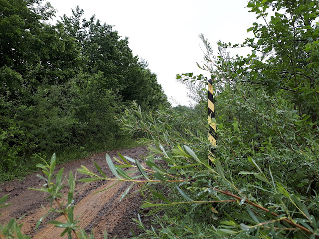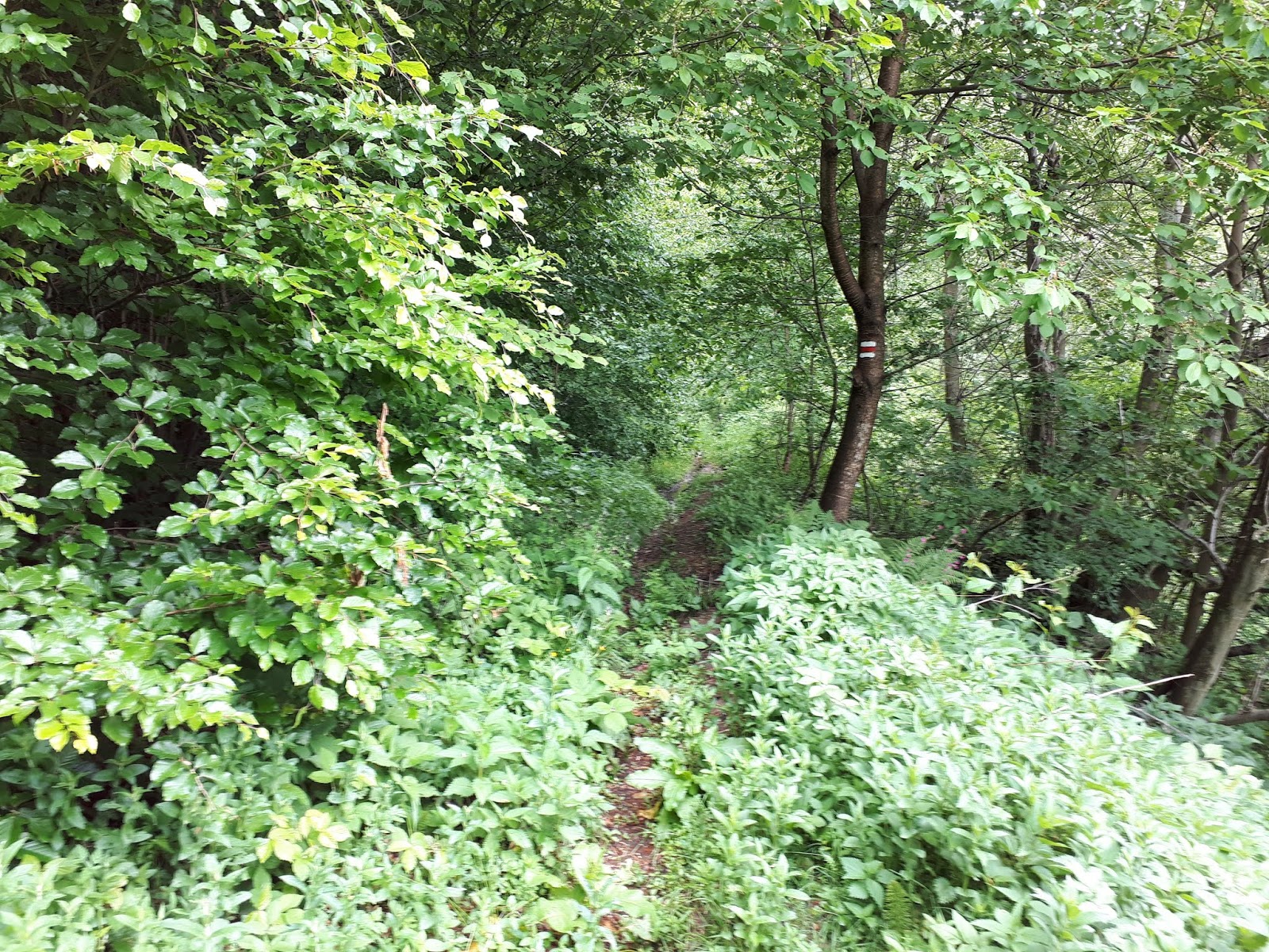 Сухою погодою ми насалоджувались від сили 3 год. Тут нас накрило темною хмарою, загриміло й почалась злива. Починаємо підйом. Дорога обходить г. Клева і на перехресті треба повернути вліво перед самим лісом треба повернути вправо і старою, порослою чагарями стежкою перти 1,5 км. тут легко можна збитися, але варто триматись межі лісу і, врешті, виходимо на дорогу з маркером. Дорога йтиме серпантином то над, то попід залізничними шляхами, тунелями. Маркування хороше, тому треба бути уважним, щоб не зайти в Польщу)) Прикордонників ми не зустріли. На цій ділянці достатньо українського паспорта.
