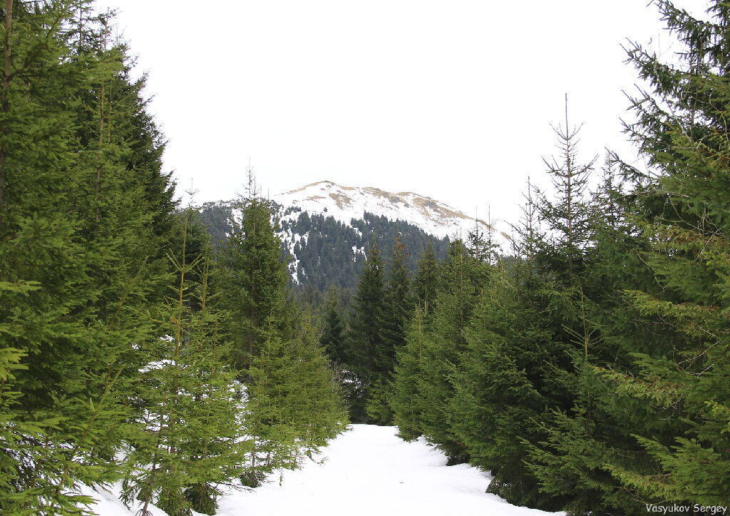 В 8:30 выходим с места ночевки. Еще вчера решили немного облегчить себе путь. На дороге лежит снег, тропить его не хотелось. А от домика по южному склону идет тропа. Подъем по ней достаточно крутой, но снег там растаял, и лежала сухая листва. Эта тропа выводит на дорогу в районе пол. Щевор. На карте «карпатских стежок» этот путь не отмечен.