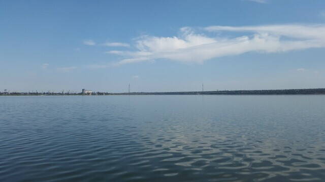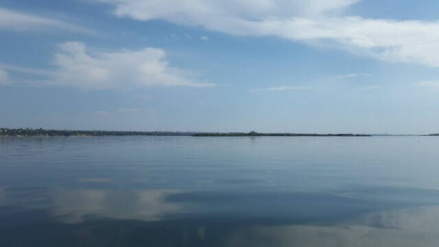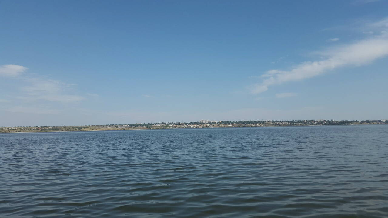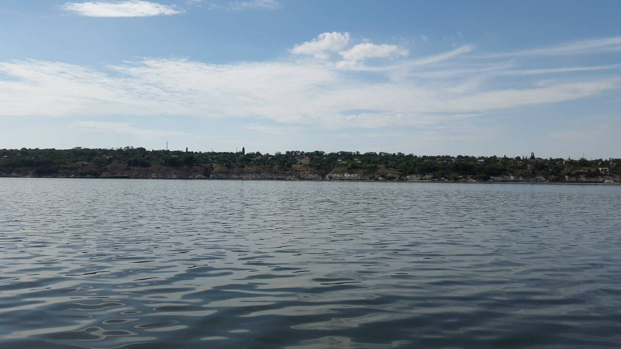 Пройдя всё предидущее расстояние по штилю после первого порта в Николаеве вышли в "трубу" Бугского лимана и тут потихоньку подул встречный ветер и в начале на воде появилась рябь....