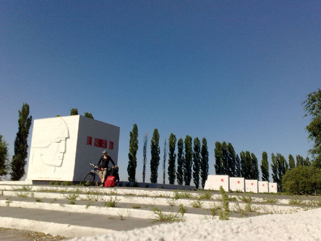 Ростов проглотил меня в один момент . Внезапно я оказался в потоке машин.небыло ни прогорода не частного сектора .Воздух сразу стал раскалённым и наполнненым шумом.НО ! было одно но ... заметил я что к велосипеду тут относятся как то не так как там где я когда то был . То -есть-Плотный поток машин . несколько полос, ну в общем всё такое и ни кто меня не отжимает не обгоняет (за исключением другой полосы ) Вот еду я за тролейбусом но конечно ближе к обочине ...а они едут за мной !!! Вот так вот прошел я Ростов как "пуля на вылет "))) На" вылете " правда есть что рассказать. Ближе к выезду из города был все таки частный сектор . акуратный домики стоят вдоль оживлённой дороги и почти через каждые 100 метров сидят люди торгуют варённой кукурузой!!! (и это первый месяц лета )сорт правда Бондюэль . Ну и решил я испробовать сей продукт (наверняка ГМО))))) Но вкусить таки не пришлось так как был сам "укушен "ценой.50руб за качан.почти 13 гривен.(((И в то время почти 2$ А настроение то уже обеденное... и вот самый последний продавец оказался бабушкой ! которая продавала ГОРЯЧИЕ пирожки с картошкой по 30 руб за штуку (большие такие !!!) Я взял 3 осилил только два ))
