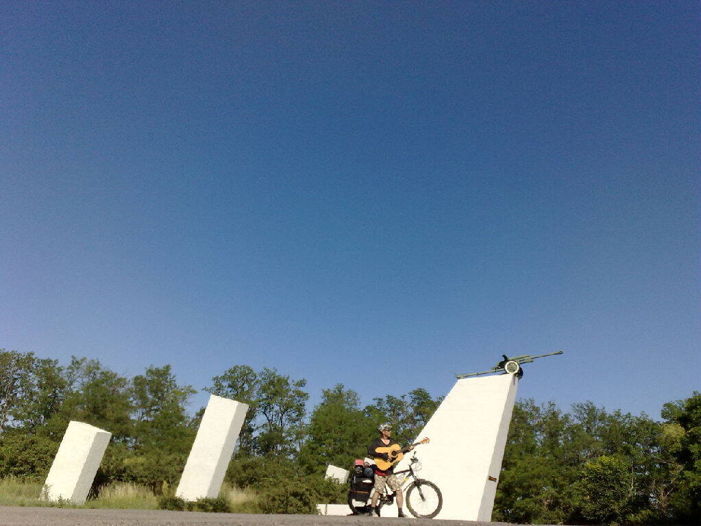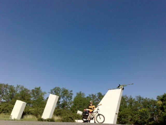 ну вот и выезд из города ! Перед этим мостом заметил я что то вроде памятного знака , На столбе приклеплён велосипед(мне он сразу бросился в глаза )Ну что то вроде того что в Харькове на песках в районе велоцентра, только не тандем канечно а шосейник. под ним памятная доска о погибшем в этом месте основателе велосипедного движения в городе Ростове-На-Дону Дмитрие. Фамилию я к сожелению забыл ((( была у меня мысль фоткнуть но потом передумал.