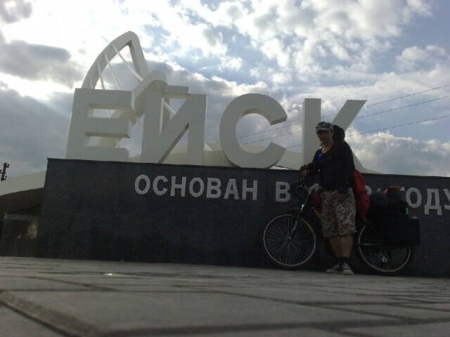 Небольшой уютный городк с тенистыми улицами.Нужно заметить что в Ейск из Ростова ведут три дороги, я конечно выбрал ту которая короче, и пролегала она через Порт-Катон .Некогда захудалая деревушка на границе Ростовской области и Краснодарского края но теперь местные жители называют её Лас-Вегас)) (после указа Путина все казино были перенесены именно туда !) Была у меня мысль вкатиться туды , спустить пару тройку гривен , да побоялся что с велеком в нутрь не впустят)))))Заночевал на обрыве возле моря не доезжая км 10.