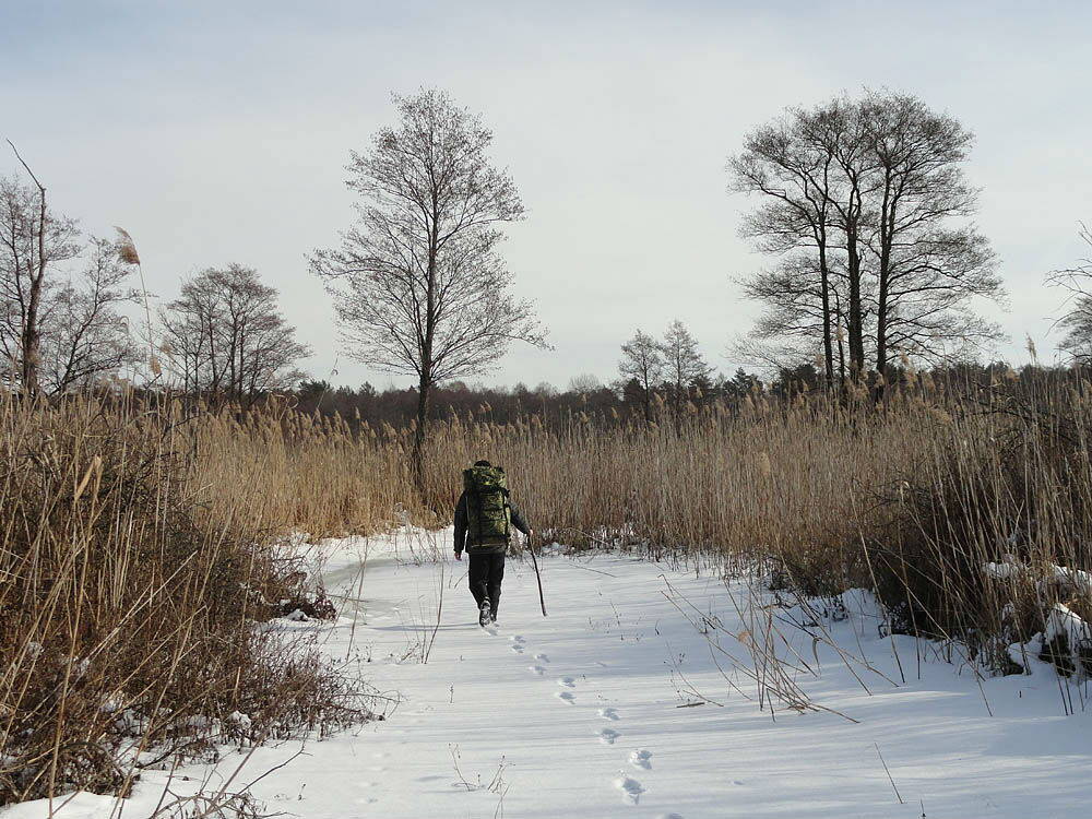 По лісі в снігах йти важкувато. Вирішили вийти назад на русла. А це не так легко. Через очерет дерлись, як дикі кабани.