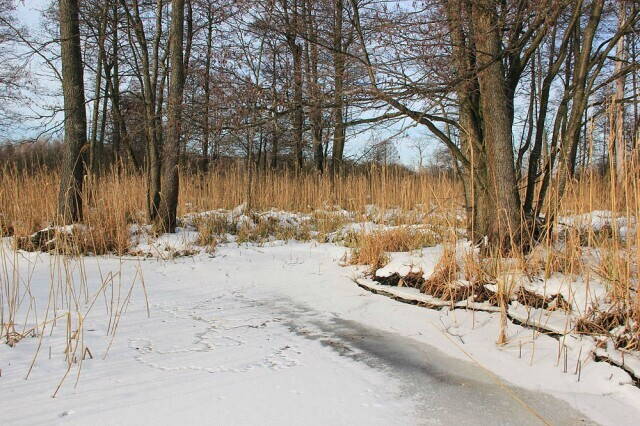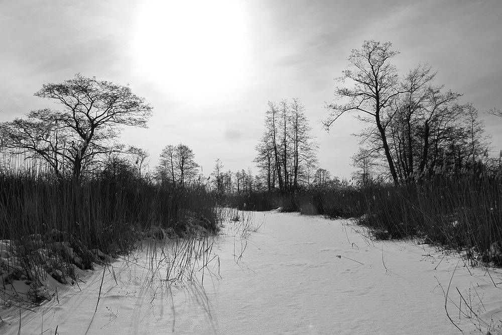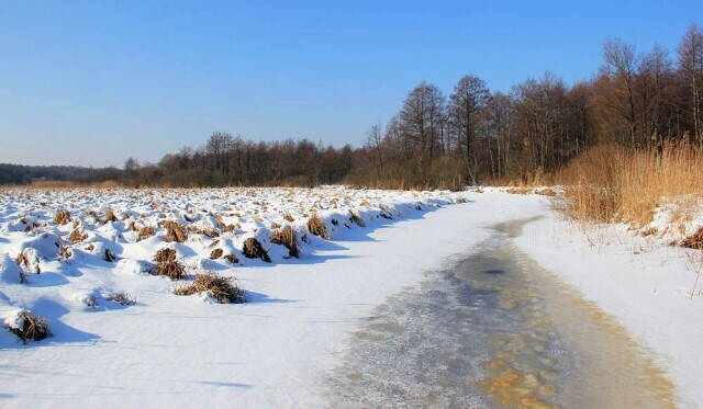 Вузькими і широкими протоками поволі просувались до Краснянських мостів. Русла сильно петляють. Спрямляти їх немає сенсу - одразу застрягаєш в очеретах, засипаних снігом.