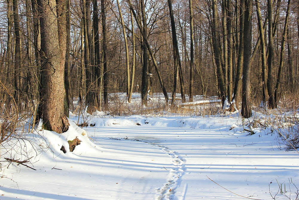 На снігу багато слідів тварин. Пройшли і якісь рибаки, чи мисливці. Хтось навіть піжонив в туфлях.