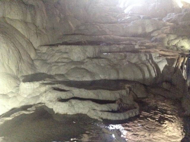 Осман с Катей на своей машине прокатили нас по окрестностям. Мы посетили сероводородные источники, спускались в пещеры, где текли подземные реки образуя водопады и озеро с необычным ультрамариновым цветом. К характерному запаху сероводорода мы привыкли довольно быстро. После пещер мы с удовольствием искупались в басейне.