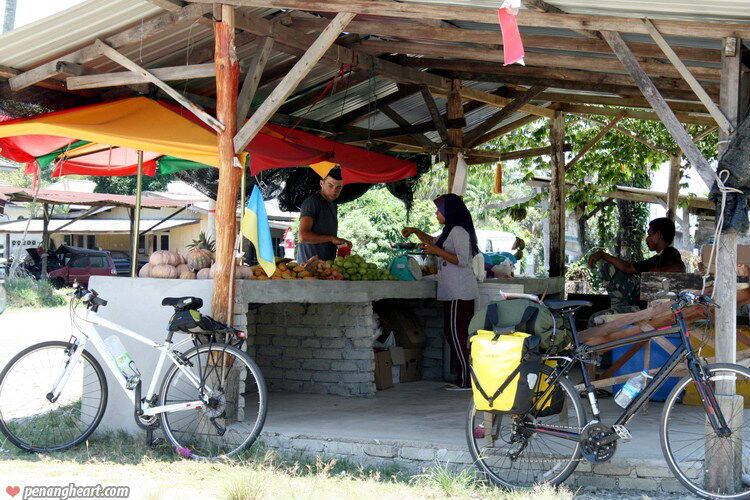 Після цього відпочинку було довге крутіння педалей, кілька зупинок на перкуси і фруктовий брейк біля розкладки, де продавали манго по три рингіти за кіло. Згодом ми зрозуміли чому вони такі дешеві – манго в цій частині країни ростуть попри дорогу, так як в нас каштани. Правда придорожніх манго ми не дуже хотіли, і насолоджувалися купленими, надіючись що вони зірвані не тут же – біля дорогиJ