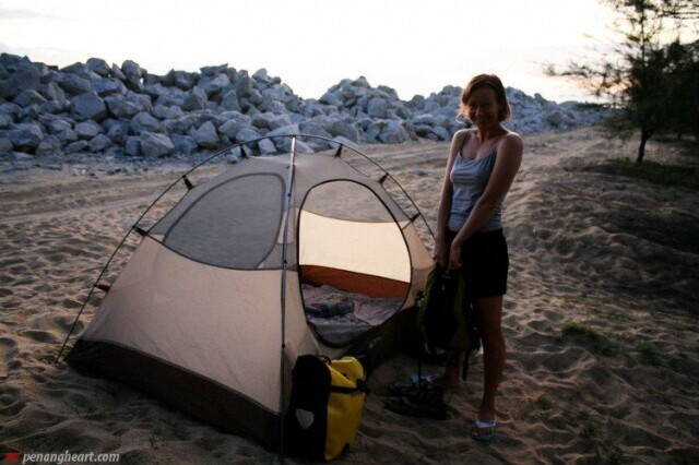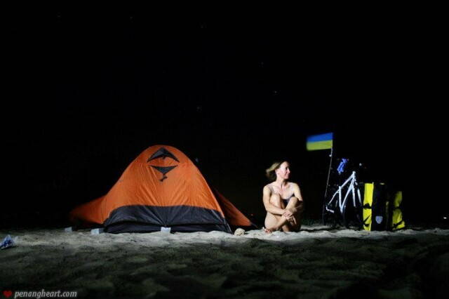 Перше найдене мною місце для ночівлі жона забракувала через неприємний запах, через звалище неподалік. Потім разом поїхали на територію якогось місцевого готелю, що мав вигляд приморських радянських курортів – ряди окремих дерев’яних будиночків на пляжі. Все то огороджено сіткою зі всіх сторін крім моря, але на в’їзді нами ніхто не зацікавився. Найшовши гарне місце біля крайніх будиночків, більшість з яких була порожньою, ми і розбили палатку. Поки надворі остаточно стемніло я встиг злітати до центральної набережної і взяти якогось рису з овочами і пачку печива «Тигр». Цим і повечеряли.
