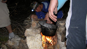 Сливаем воду и теперь уже набираем нормальную, чистую, прозрачную водичку. Возвращаемся в лагерь, дрова уже готовы, костёр на подходе...