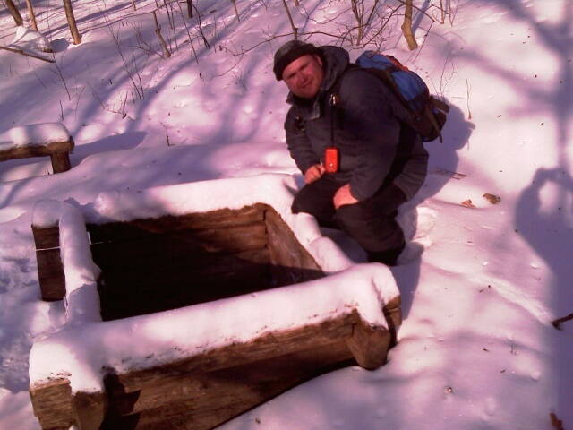 Думал, что найду болотину и все. Слабо верил в наличие какой либо конструкции. Хорошо, что пошел зимой. Болотина вся замерзла. Бурелом проходим. То что увидел, повергло меня в легкий шок. Действительно стоит старый колодец. На глубине 1.5-2 метра водичка чистая. Не замерзает. Рядом столик и лавочка свежие. Чуть выше над колодцем остатки 2х землянок. Явно с времен войны. По склону проходя 2 лини окопов (очень на то похоже). Еще выше несколько кормушек для животных. Просматривается тропинка к колодцу со стороны Комаровки. Было очень холодно и много снега, потому много не осматривал окрестности.