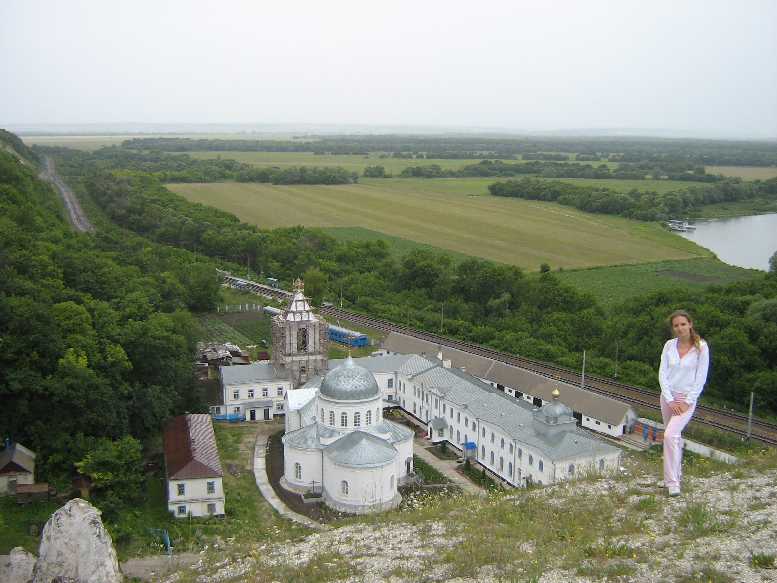 Монастырь. Железная дорога. Дон с белыми теплоходами у причала.