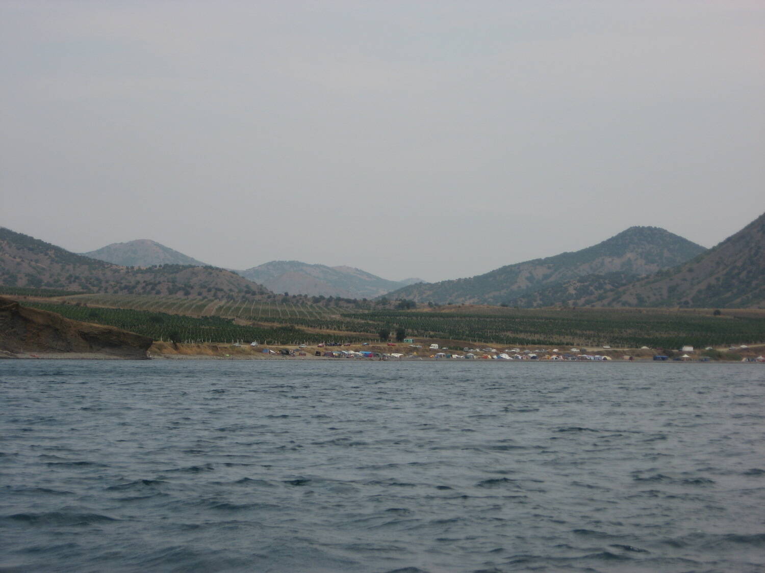 А так с моря выглядит кемпинг в Веселом. Но этот, на сколько я знаю, раньше был бесплатным. К нему грунтовая дорога ведет (могу ошибаться) и находится он в паре км от трассы
